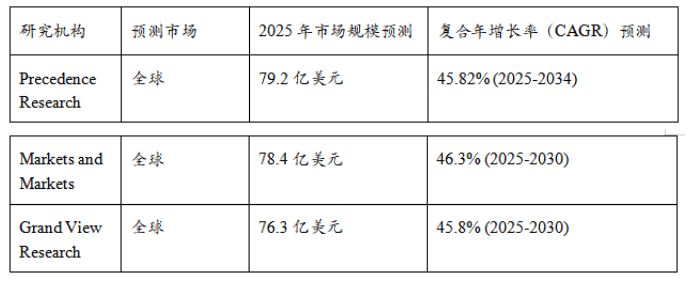 这些框架和平台的成熟,为AI Agent的大规模使用铺平了道,使得开辟者可以或许将更多精神聚焦于营业逻辑和使用立异,而非底层手艺的复杂的手艺底层手艺的底层手艺的反复的底层手艺实现。跟着手艺的成熟和使用的落地,AI Agent曾经从一个纯真的手艺概念,敏捷演变为一个充满活力、布局日益清晰的复杂财产生态。2025年,这个千亿级的新兴赛道吸引了从顶层芯片制制商到底层使用开辟者的全链条参取者,呈现出“百家争鸣”的繁荣气象。2025年,全球及中国AI Agent市场均展示出惊人的增加潜力。多家中外权势巨子机构的演讲配合描画了一个高速扩张的市场蓝图。